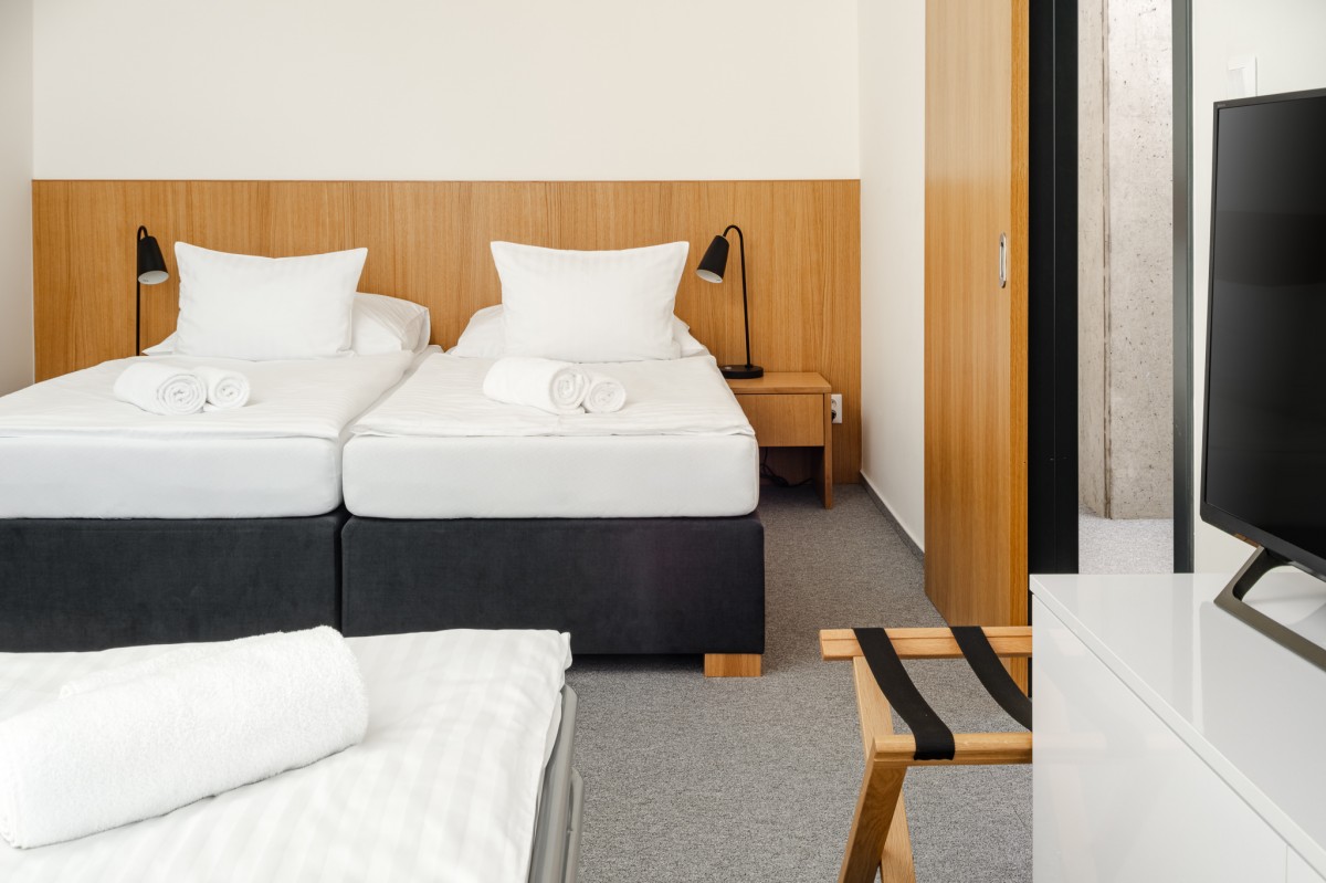 Hotel pojme 41 hostů, kteří si mohou vybrat některý z 20 klimatizovaných, nekuřáckých pokojů s Wi-Fi připojením. Samozřejmostí je kryté parkoviště zdarma a postaráme se i o Vaše kola.