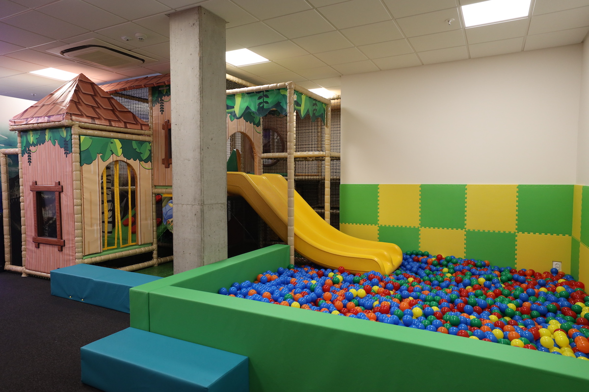 V dětském koutku na děti čeká herní sestava se skluzavkou a bazénkem s relaxačními kuličkami.